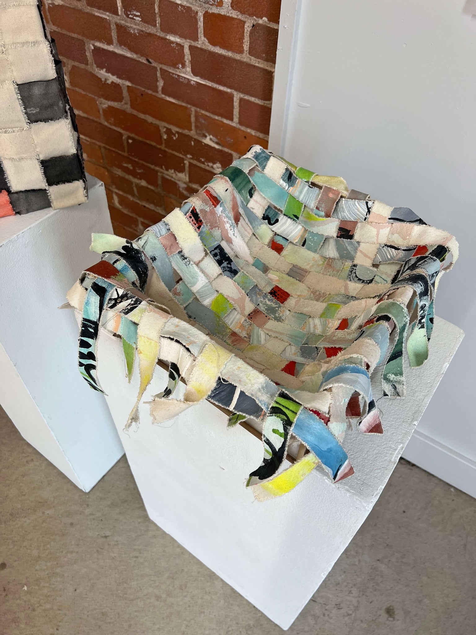 This 3D textile-based sculpture work is part of the HOLD collection - a body of work that's inspired by the concept of baskets: vessels that were designed to hold and carry items only of a certain size with limitations…not everything is meant to be carried. Grains of sand, water, soil, beads, pebbles, leaves, berries… still slip through the cracks. The baskets are meant to hold onto what truly matters, and release whatever doesn’t. The cracks are there to let whatever shouldn’t be contained slip away. The history of basket making has been lost - the basket couldn’t even hold onto its own story. This collection explores the paradox that exists in the moments of time when letting go is essential in order to be able to carry on with what matters. Not everything or everyone was meant to be kept.